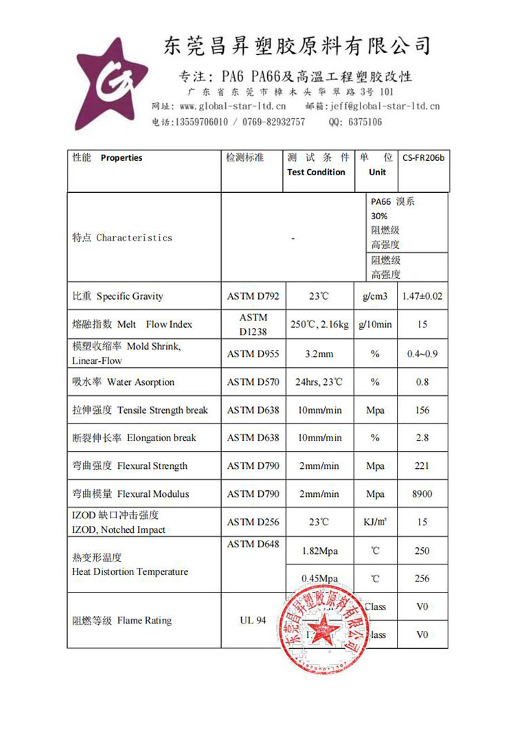 1、(PA66 溴系30%阻燃级高强度)